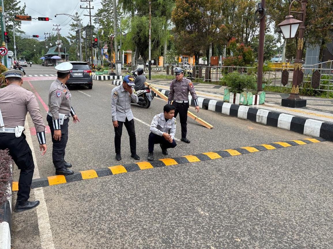 Polres Tabalong melalui jajaran Satlantas melakukan pemasangan pemasangan speed bump di kawasan Taman Giat Kota Tanjung.