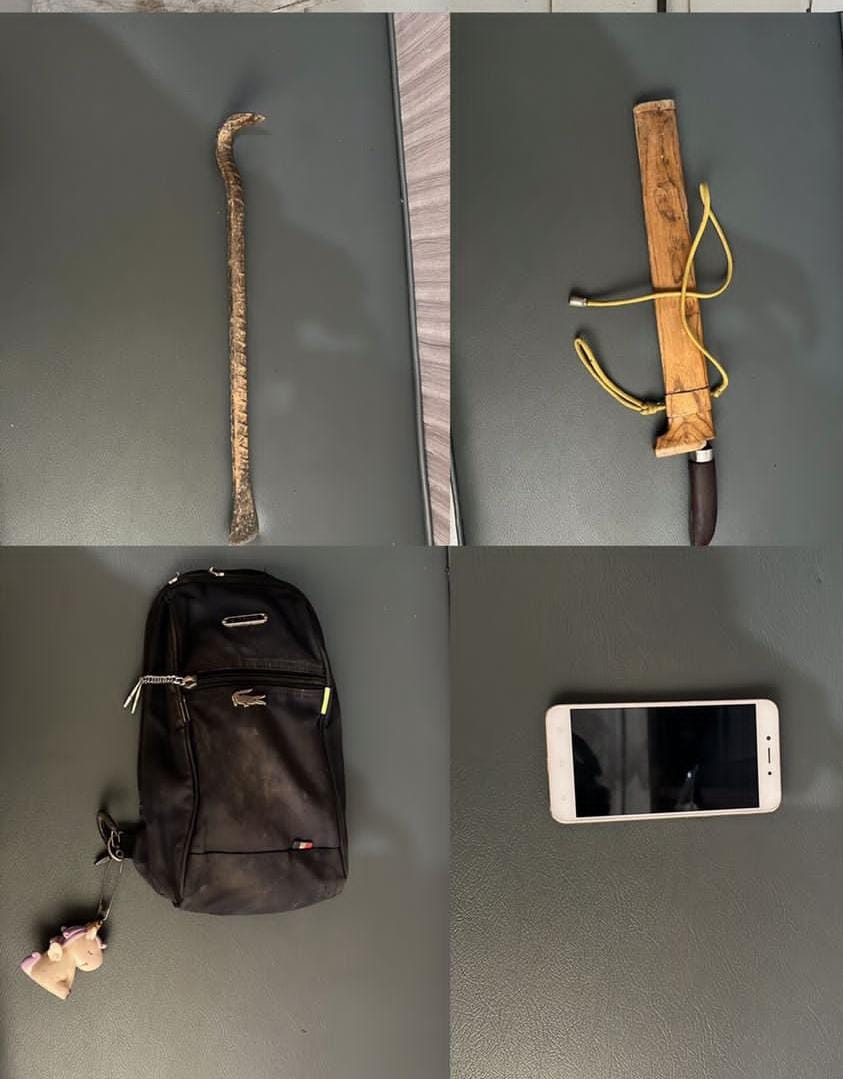 Dari tangan pelaku, polisi berhasil mengamankan sejumlah alat yang digunakan untuk melancarkan aksinya berupa 1 buah linggis ukuran panjang, 1 buah linggis ukuran pendek, 1 buah senjata tajam jenis parang dan 1 unit gawai (handphone) berwarna putih.