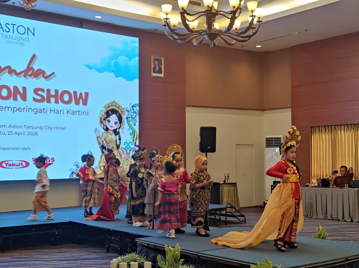 TANJUNG, kontrasx.com – Puluhan anak tampil percaya diri di atas panggung dalam ajang Fashion Show yang diselenggarakan oleh Aston Tanjung City Hotel, Sabtu (25/4).